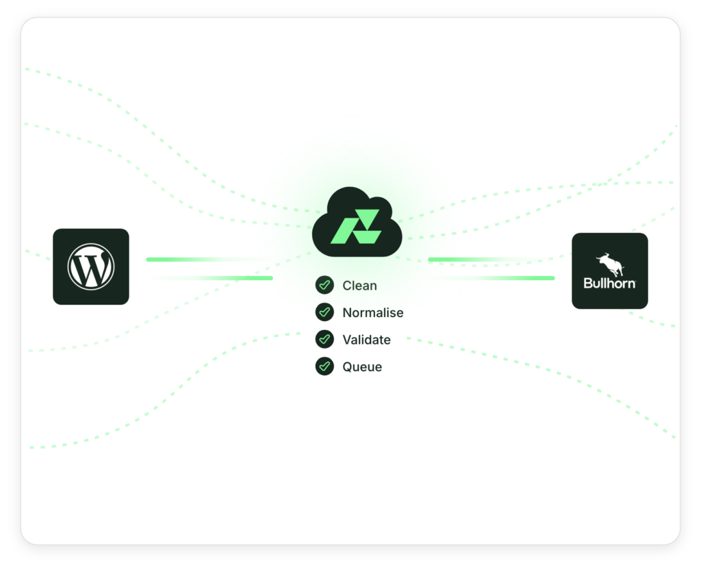Recruitilize is built on a managed ATS connection network that sits behind the WordPress plugin, ensuring reliable and consistent communication with Bullhorn. API requests are handled through our cloud platform, allowing us to manage connectivity, monitor performance, and gracefully handle issues such as temporary outages or rate limits.